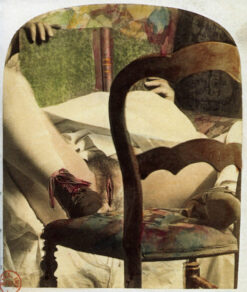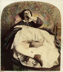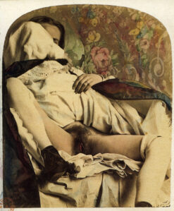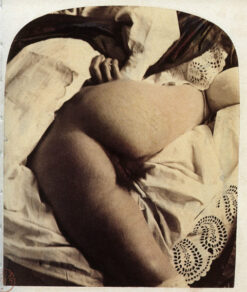 En octobre 1860, cinq mille clichés licencieux sont saisis au domicile d’Auguste Belloc. De cette saisie aujourd’hui ne subsistent que vingt-quatre vues stéréoscopiques, conservées dans l’Enfer de la Bibliothèque nationale de France. Là où, habituellement, les draperies dérobent ce qu’il faut soustraire au regard, ces images montrent, sans dissimulation aucune, au milieu du fouillis des soies, le sexe comme une fleur de pourpre. Cette série inédite est considérée comme un moment majeur dans l’art de la photographie.